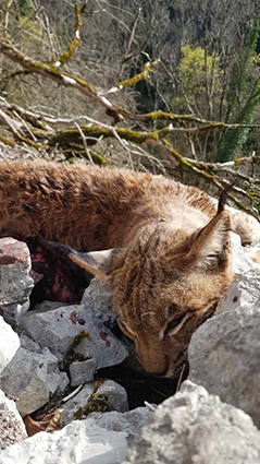 Un cadavre de femelle de lynx adulte a été découvert mardi 17 mars par des enfants sur la commune d’IVREY (39). Eventré, reposant dans des éboulis en contrebas de la route, il n’a pu, selon les découvreurs, qu’être jeté volontairement en contrebas. Ils nous ont alerté immédiatement et on également averti l’Office Français de la Biodiversité (OFB) qui a réalisé les premières constatations et emporté le cadavre pour autopsie.